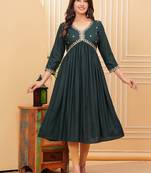 • Product Id : 4463442 • Package Details : 1 Anarkali Gown • Type : Plus Size Kurtis • Fabric : Rayon • Work : Plain • Type : Dori Embroidery • Look : Designer • Sleeve : Quarter Sleeve • Neck Style : Round Neck • Color : Green • Stitching : Stitched • Length : 48.0 Payments [+]