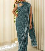 Dark Rama Blue Georgette Stripes Print Leheriya Stone Border Saree With Unstitched Blouse Piece