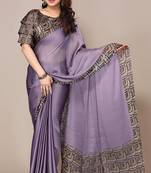 Dusty Purple Chiffon Plain Geometric Print Printed Saree With Unstitched Blouse Piece