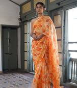 Light Orange Floral Print Chiffon Saree With Unstiched Blouse Piece
