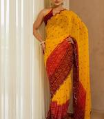 • Product Id : 4485040 • Package Details : 1 Saree/1 Blouse • Type : Georgette Sarees • Work : Printed • Type : Bandhej • Look : Fashion • Pallu Style : Printed Pallu • Stitching : Unstitched • Width : 44 Inches • Length : 5.5 Metres Stitching [+]