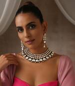 Gold Tone Moissanite Polki Necklace Set Material : Brass Color : Gold