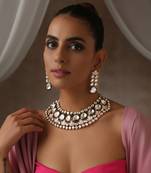 Green Gold Tone Moissanite Polki Necklace Set Material : Brass Color : Green