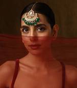 Green Gold Tone Polki Maang Tikka Material : Brass Color : Green