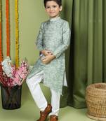 • Product Id : 4216775 • Package Details : 1 Kurta • Type : Kids Kurta Pyjama • Work : Printed • Look : Traditional • Sleeve : Full Sleeve • Neck Style : Chinese Collar Kameez • Top Color : Green • Top Fabric : Pure Cotton • Stitching : Stitched Payments [+]