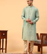 Tabard Green Cotton Full Sleeve Regular Fit Kurta Churidar Set