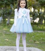 This outfit is a delightful and playful ensemble featuring a combination of a long-sleeve white top and a purple tulle skirt. The white top has puffed shoulders, adding a stylish and elegant touch. The front features a large pink sequined heart, which adds a sparkling and fun element to the outfit. The soft purple tulle skirt is voluminous, creating a ballerina-inspired look. It is cinched at the waist with a vibrant purple satin bow, enhancing the girly and festive appeal. This charming dress is perfect for parties, birthdays, and special occasions where a cute and stylish look is desired. Made In 100% Cotton Lined In Cotton. It is soft & breathable; Care: Dry clean only. Steam iron only. Do not bleach