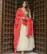 • Dupatta : Color- Red / Fabric- Georgette • Bottom : Color- Beige / Fabric- Georgette Kameez Details