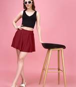Red Plain Solid Nylon Soft Mini Skirt For Women
