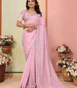 Baby Pink Organza Sequins Saree With Blouse