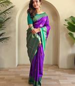 • Saree : Color- Purple / Fabric- Silk Blend • Blouse : Color- Purple / Fabric- Silk Blend Saree Details