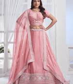 This stunning set features a peach color organza lehenga with intricate multi-embroidered work and sequin detailing. The matching georgette choli and net dupatta also boast similar embroidered and sequin work, perfect for weddings, engagements, receptions, and special occasions. The semi-stitched lehenga can fit up to 42 inches, giving you a customizable fit. Pair this elegant ensemble with a trendy bun and heels for a memorable look that will turn heads. Whether draped gracefully over the shoulders or styled creatively, the dupatta adds a layer of elegance and grace to the attire. Disclaimer: slight color variation may occur due to photographic reasons.