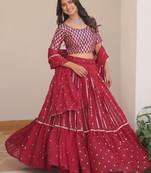 Red Sequins Georgette Festival Wear Lehenga Choli With Dupatta