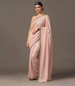Embrace Dazzling Sophistication With This Exquisite Saree Featuring All-Over Monotonal Soft Peach Sequin Detailing And A Border Adorned With Soft Gold Swarovski Crystals. This Timeless Classic Combines The Brilliance Of Sequins With The Opulence Of Swarovski Crystals,Both Shimmery And Matte. It Is Paired With An Unstitched Blouse In The Same Colour Sporting The Two Borders Of Crystalline Work, Same As The Saree.