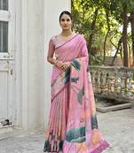 Baby Pink All Over Floral Printed Design Saree