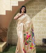 • Color : Cream • Fabric Of : Paithani Silk • Color : Cream Blouse Details