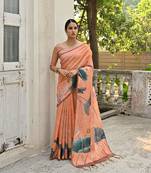• Saree : Color- Orange / Fabric- Cotton Silk • Blouse : Color- Orange / Fabric- Cotton Silk Saree Details