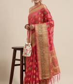 Pink Zari Woven Design Faux Banarasi Organza Saree