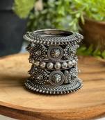 Silver Plated Oxidised Bangle Stack (Set Of 5)