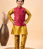 Boys' Mustard Jacket, Kurta And Pyjama Set