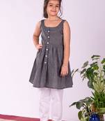 Fabric: Cotton | Contents: Pure Handloom Cotton Fabric Short Kurta With Straight Pants And Contracting Buttons Let your girl dress up in style with this adorable and beautiful set. The elegant designs on the set can make your child feel like a princess! Perfect for a party or special event, pair it with beautiful mojri shoes to complete the princess look! We manufacture kids wear for Girls 1-2 years, 2-3 years, 3-4 years, 4-5 years, 5-6 years, 6-7 years, 7-8 years, 8-9 years, 9-10 years, 10-11 years, 11-12 years, 12-13 years, 13-14 years, 14-15 years and kids wear for baby girls 0-6 months, 6-12 months, 12-18 months, 18-24 months. Introduce a stylish spin to the wardrobe of your little angel. Our expert craftsmen have meticulously tailored each of the dresses to keep up with the latest trends. Uniquely designed, the dresses boast a beautiful make that will surely complement your daughter's choices. Do not worry about the right size, as this dress from the house of vastramay comes in multiple sizes. Just check the kurta length and chest size, to find the right fit for your bundle of joy. Wash Care Instructions: Dry Clean preferably or cold light wash. Disclaimer: We have made a consistent effort to make the colours and finishes similar to the image of the products you see on screen. However, the actual product and the images on the website can differ! Customer's discretion is advised.