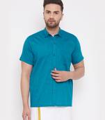 Men's Turquoise Cotton Blend Ethnic Shirt