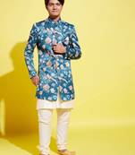 Yuva Boys' Multicolored Base Turquoise Indowestern Set