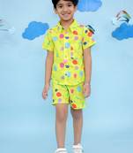 • Product Id : 4631011 • Package Details : 1 Coordset • Type : Boy Clothing Sets • Work : Printed • Sleeve : Half Sleeve • Top Color : Yellow • Top Fabric : Cotton • Stitching : Stitched • Gender : Boy Payments [+]