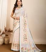 White Maslin Cotton Printed & Hand Work Fancy Saree