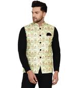 Veera Paridhaan Men's Cotton Printed Nehru Jacket (Green)-Veera Paridhaan Is A Modern Men's Fashion Brand Known For Exceptional Craftsmanship And Contemporary Tailoring. Nehru Jacket Also Known As Jawahar Cut For Mens Gives The Perfect Look For Formal To Casual Occasions With The High Quality Blended Fabric Combined With Perfectly Crafted Stitching. These Nehru Jackets Have 3 Pockets And Have A Regular Fit.These Jackets Will Enhance Your Elegance And Is Sure To Make Heads Turn. So, Go Ahead And Add These To Your Collection And Make Every Occasion A Memorable One.Pair It With Shirt Or Kurta For A Chic Evening Party.