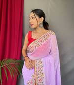 Purple Sequance Work Emboirdary Border Saree With Blouse
