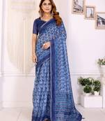 Blue Printed Art Silk Designer Pallu Chanderi Saree