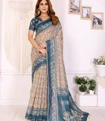 Chiku Printed Art Silk Designer Pallu Chanderi Saree