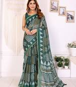 Green Printed Art Silk Designer Pallu Chanderi Saree