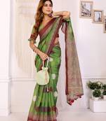 Green Printed Art Silk Designer Pallu Chanderi Saree
