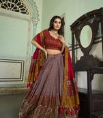 Women's Tussar Silk Kashmiri With Print And Foil Print Lehenga Choli