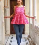 Women's Bandhej Printed Sleeveless Top (Pink)