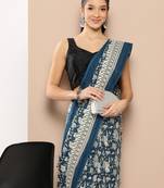 Blue Mulmul Cotton Floral Sarees With Unstitched Blouse