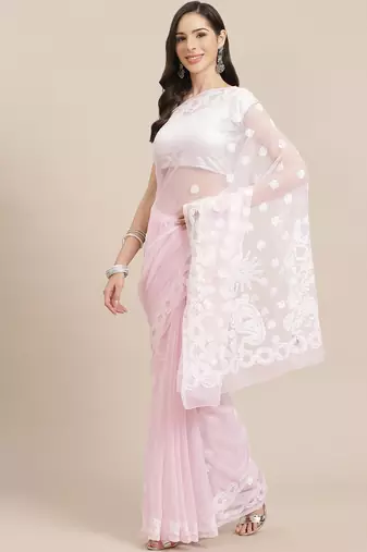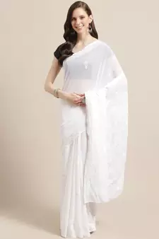 The Georgette Chikankari saris on our website are well known for their unique texture and feel. These sarees are sheer in texture and extremely delicate. These sarees are all about lightness and elegance, making the gorgeous sarees look ultra luxurious.