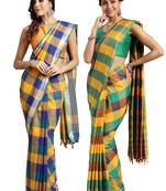 Multicolor checked saree, has a zari and/or woven border. Comes with
