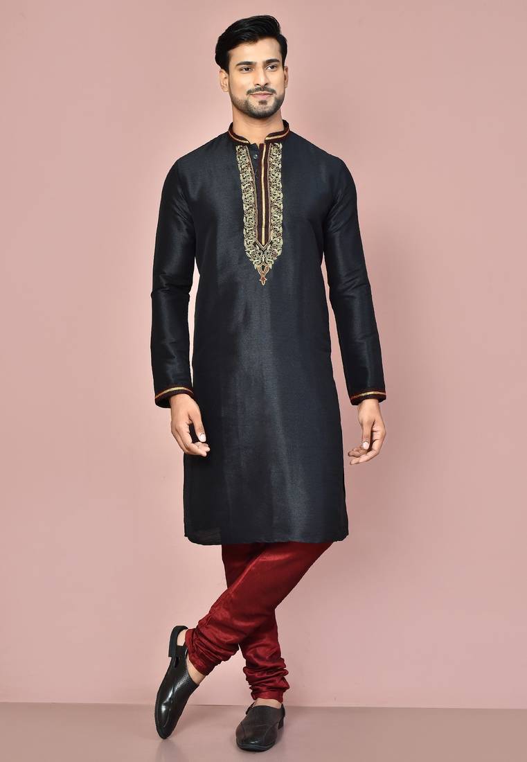 Black Mulbury Kurta With Pattern Work&Hand Work Churidar