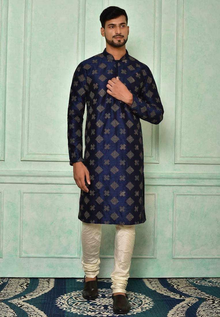 If you find the product for less we'll match it! Know MoreBLUE DUPION ART SILK KURTA WITH COMPUTERISED EMBROIDERY MACHINE WORK CHURIDAR