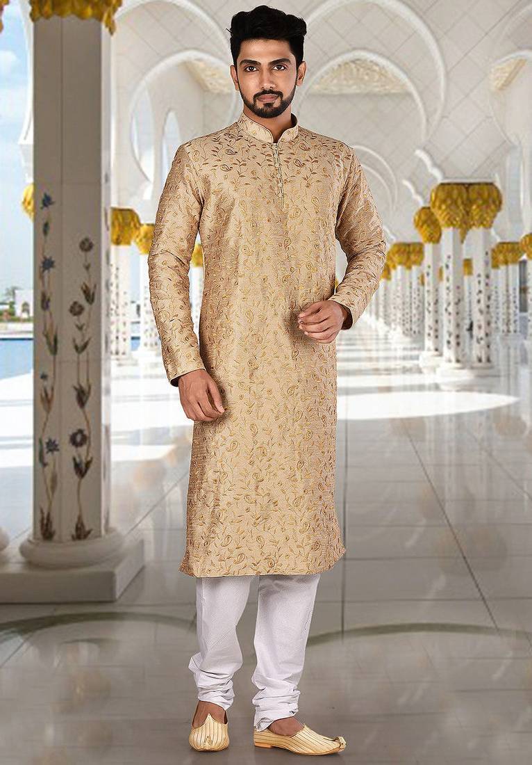 If you find the product for less we'll match it! Know MoreDARK BEIGE DUPION ART SILK KURTA WITH COMPUTERISED EMBROIDERY MACHINE WORK CHURIDAR