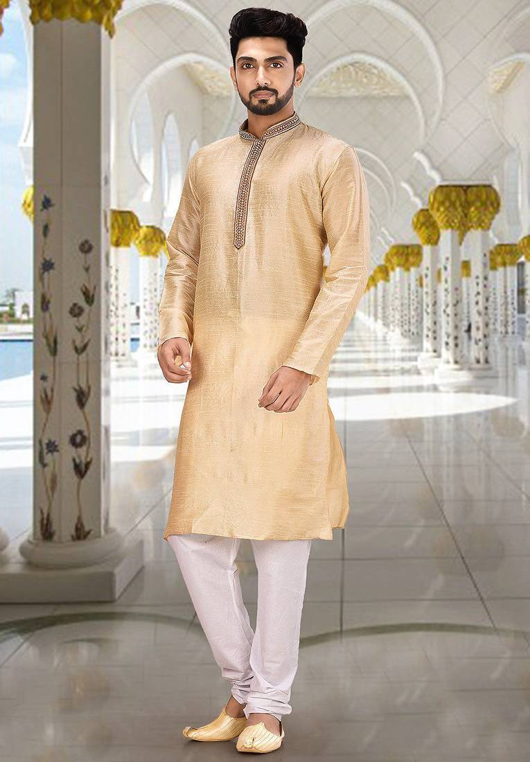 • Fawn dupion art silk  kurta with patten work&hand work