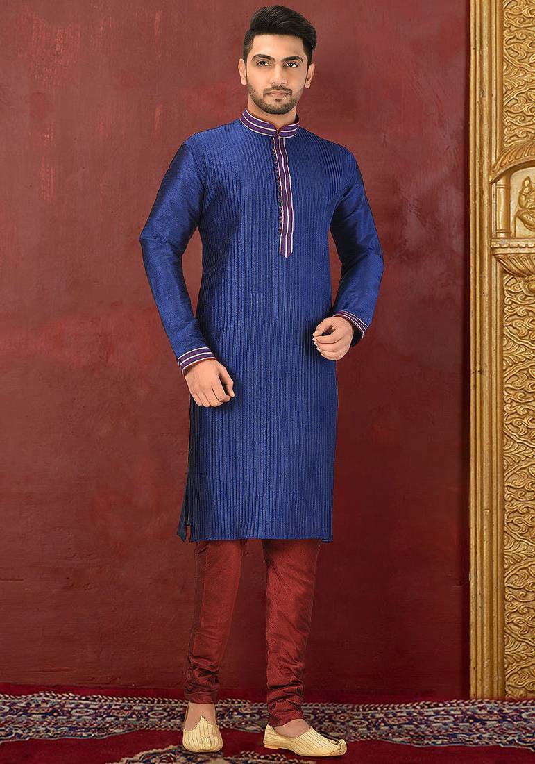 • Product Id : 4742830 • Package Details : 1 Kurta / 1 Churidar • Type : Kurta Pajama • Work : Plain • Look : Designer • Bottom Style : Churidar • Sleeve : Full Sleeve • Neck Style : Band Collar Neck Kameez • Color : Blue • Bottom Color : Red • Top Color : Blue • Top Fabric : Art Dupion Silk • Bottom Fabric : Art Dupion Silk • Fabric : Art Dupion Silk • Stitching : Stitched Need Help ?About the Seller