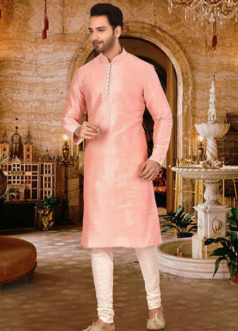 • Pink Dupion Art Silk Kurta With Pattern Work And 8 Button Churidar