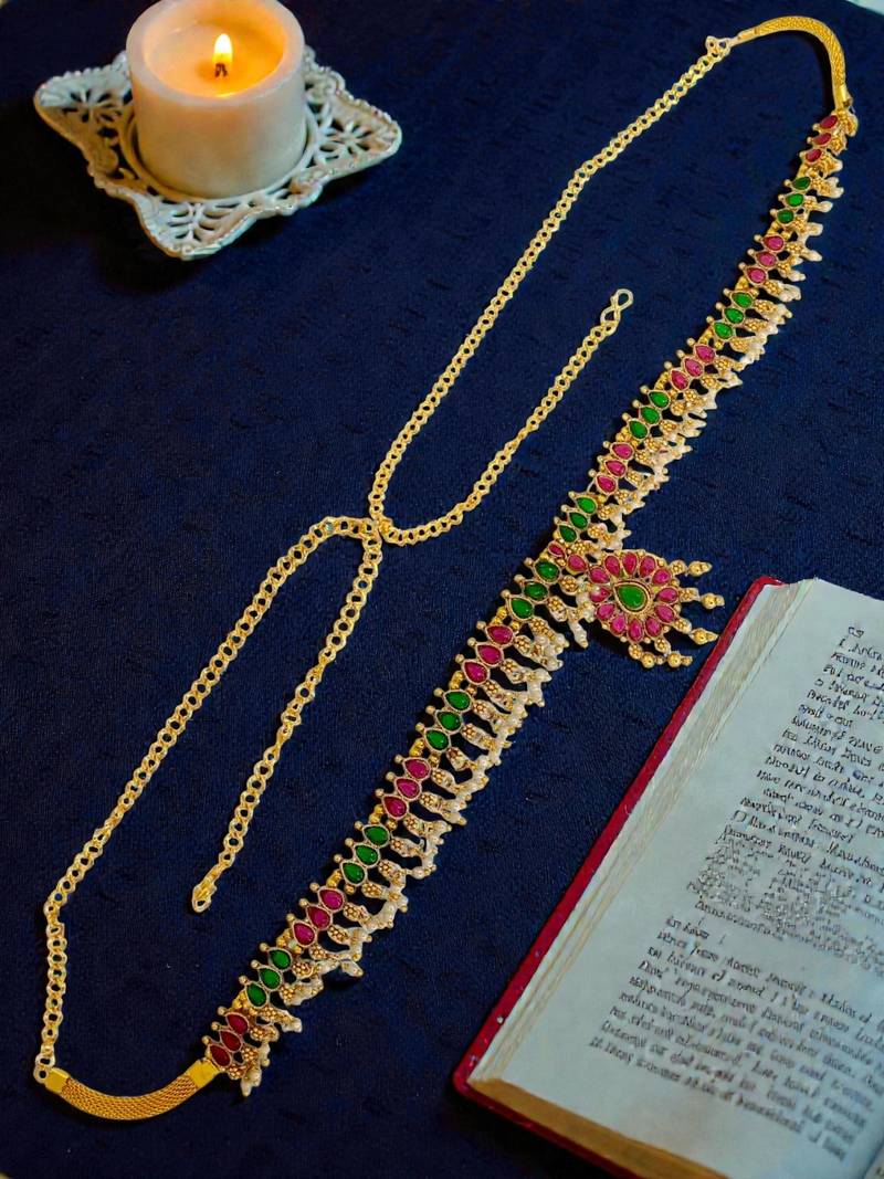 • Product Id : 4674242 • Package Details : 1 Pc Waist Belt • Type : Womens Belts • Occasion : Wedding • Look : Traditional • Jewellery Work : Studded Jewellery • Color : Gold • Plating : Yellow Gold • Base Material : Alloy • Piercing : No • Pearl Type : Na • Pearl Shape : Na • Height : 32.5 • Width : 2.4 • Care : Store Jewellery In A Zip Lock Pouch (Air Tight Pouch), Keep Away From Water Perfume And Other Chemicals And Clean It With Dry And Soft Cloth Payments [+]