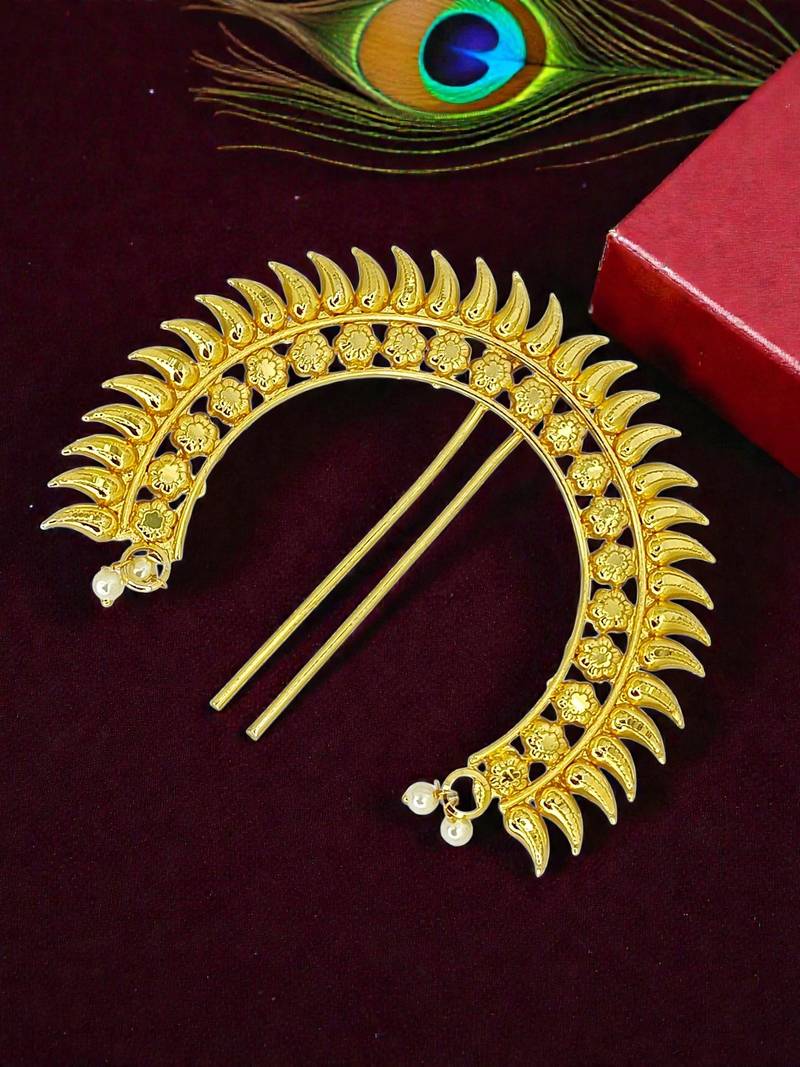 • Product Id : 4698692 • Package Details : 1 Pc Bun Pin • Type : Hair Accessories • Occasion : Wedding • Look : Traditional • Jewellery Work : Studded Jewellery • Color : Gold • Plating : Yellow Gold • Base Material : Alloy • Piercing : No • Pearl Type : Na • Pearl Shape : Na • Height : 7.0 • Width : 2.0 • Care : Store The Jewellery In A Zip Lock Pouch (Air Tight Pouch) And Avoid Water, Perfume, And Other Chemicals. Clean It With A Dry And Soft Cloth Payments [+]
