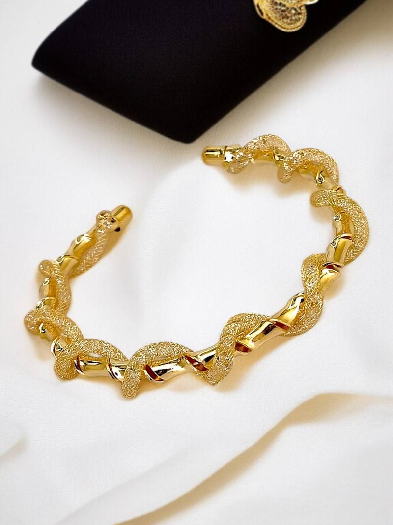 • Product Id : 4673165 • Package Details : 1 Pc Bracelet • Type : Bracelets Online • Occasion : Wedding • Look : Contemporary • Jewellery Work : Plain • Color : Gold • Plating : Yellow Gold • Base Material : Alloy • Piercing : Yes • Pearl Type : Na • Pearl Shape : Na • Height : 5.8 • Width : 0.6 • Speciality : Na Payments [+]