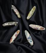 Set Of 6 Multicolour Heart Design Printed Oval Shape Sarees Brooch | Combo Set Saree Pin